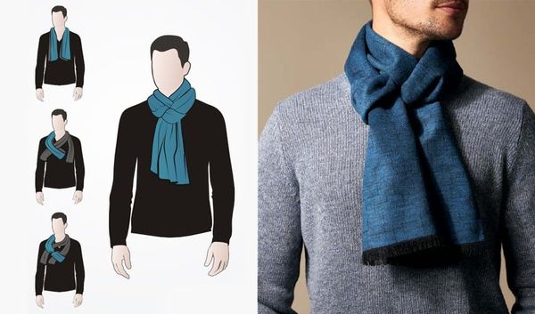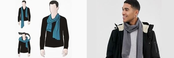 Kiểu quàng khăn này rất thích hợp cho những quý ông thích sự đơn giản, gọn gàng và nhanh chóng, kiểu quàng khăn len nam một vòng rất phù hợp cho những ngày thời tiết lạnh. Bạn chỉ cần quấn khăn quanh cổ một vòng, điều chỉnh độ chặt vừa ý là được. 4. Quàng khăn kiểu quấn 2 vòng