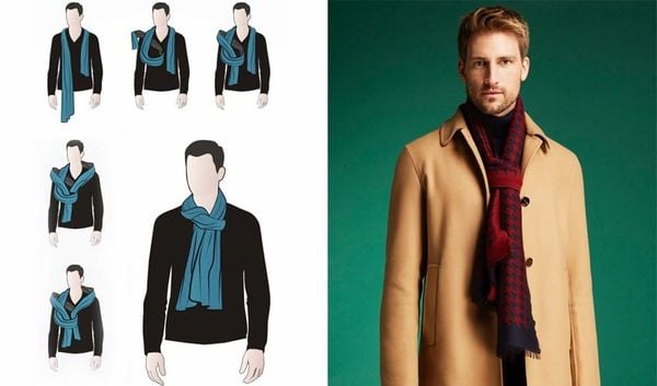 Kiểu khăn len choàng cổ nút thắt Paris - thắt khăn Pháp không chỉ phổ biến mà còn vô cùng linh hoạt, dễ dàng nhận biết giữa muôn vàn kiểu thắt khăn khác. Khi kết hợp cùng áo vest một hàng khuy hoặc áo khoác dạ, phong cách của bạn sẽ trở nên lịch lãm và sang trọng hơn. Thậm chí, mối thắt này còn có khả năng nâng tầm những món đồ mang hơi hướng đơn giản thanh lịch như áo khoác bomber hay áo khoác denim. Tuy nhiên, stylist Luke McDonald của Thread khuyến cáo bạn nên tránh những chiếc khăn có sọc dọc khi phối cùng các items này. 8. Quàng khăn kiểu thắt đôi